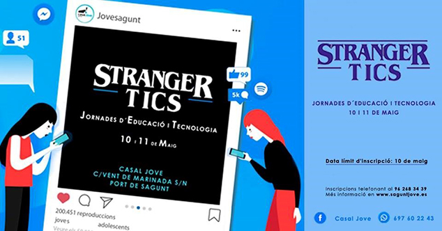 La concejalía de Juventud del Ayuntamiento de Sagunto ha puesto en marcha, por segundo año consecutivo, unas jornadas sobre el uso de las tecnologías de la información y de la comunicación (TIC), y sus posibles usos educativos en la infancia y en la adolescencia. Bajo el nombre de Stranger Tics, estas jornadas pretenden hacer reflexionar sobre qué está pasando en nuestras vidas ante los cambios tecnológicos tan rápidos y profundos, además de disponer de un espacio de comunicación en el que los jóvenes y los adultos pongan en común sus puntos de vista, teniendo en cuenta una visión desde la familia en el uso de las tecnologías. Esta iniciativa se ha enfocado en dos días, dando comienzo el viernes, 10 de mayo, con la presentación de la guía “Familia y Tics. Guía para una convivencia saludable”, que ha elaborado el departamento de Servicios Sociales del Ayuntamiento de Sagunto.