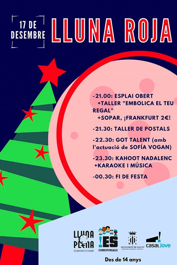 Lluna Plena, el programa de ocio alternativo para jóvenes de la concejalía de Juventud e Infancia del Ayuntamiento de Sagunto, vuelve este viernes, 17 de diciembre, y dará inicio a todas las actividades que el Casal Jove oferta para los y las adolescentes estas navidades.