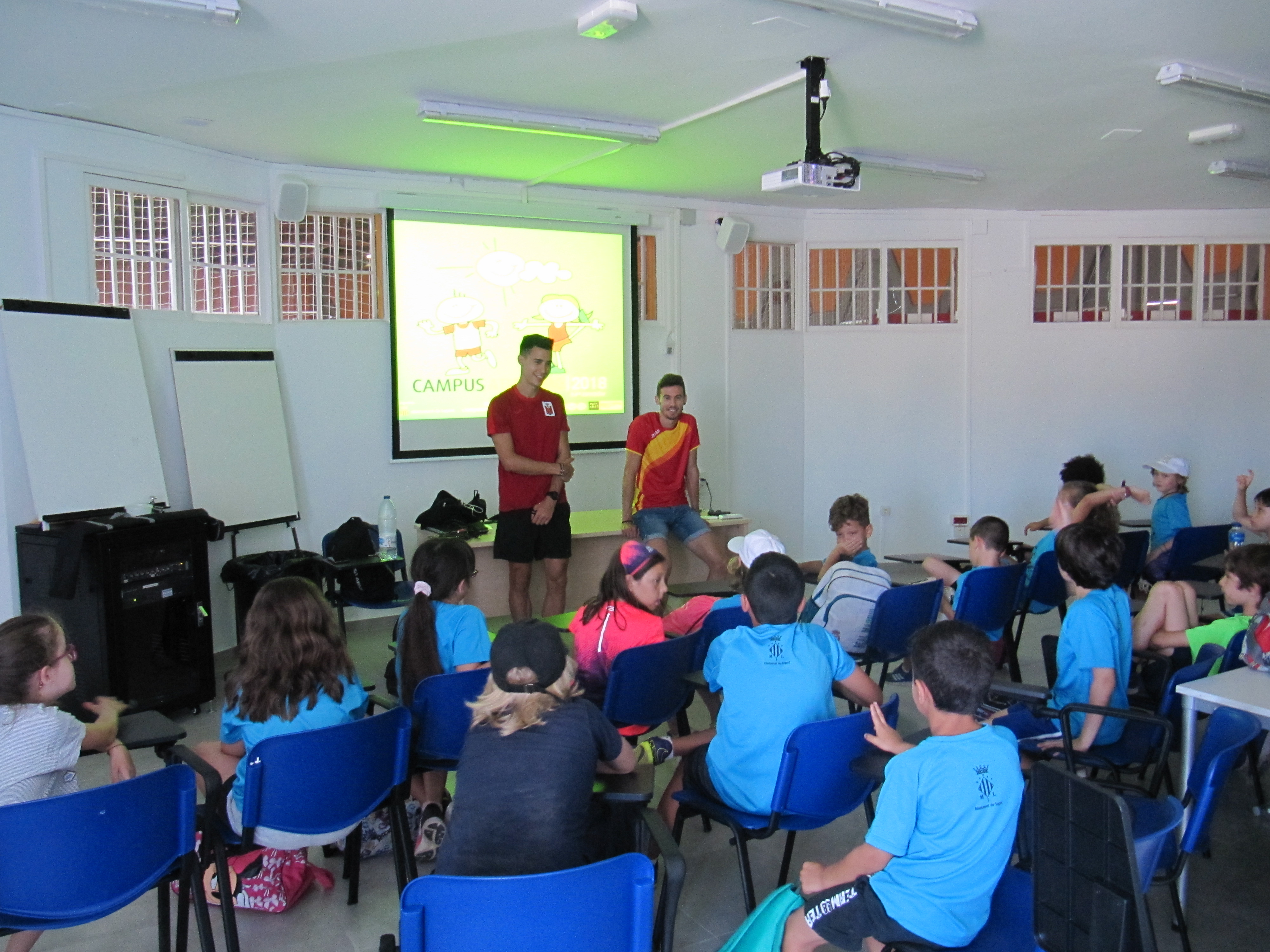 Esta mañana los atletas Eric Peñalver y Víctor Ruiz han participado en el Campus de Atletismo del departamento de Deportes del Ayuntamiento de Sagunto. Los deportistas han sido invitados a una de las actividades clásicas del campus, llamada “Mira Quién Viene Hoy…”. La finalidad de esta actividad es que las niñas y niños participantes del Campus de Atletismo conozcan personalmente a deportistas de élite, y que estos les cuenten cómo es su día a día. Los deportistas han hablado de su trayectoria, y han explicado a los niños y niñas del campus como han llegado a ser los profesionales que son ahora. Al final se ha abierto un turno de preguntas donde Peñalver y Ruiz han resuelto las dudas de los participantes del campus.
