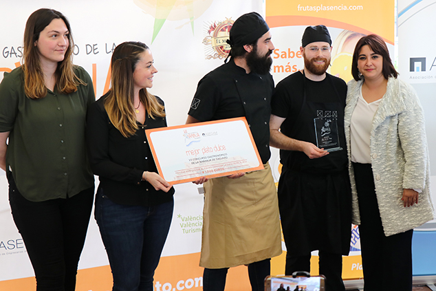 El ganador del Mejor Plato Salado ha sido el restaurante Cyrus Dad de Puerto de Sagunto que ha presentado el plato ‘Codorniz en temporada con naranja’ creado por el cocinero Víctor Aliaga, mientras que el Mejor Plato Dulce ha recaído en el restaurante Kuzina de Valencia con la elaboración de ‘Fusión de postres griegos’, elaboración creada por el cocinero Oliver Cabrera, ambos premios valorados en 1.000 euros cada uno. Por otro lado, el Mejor Plato Local ha sido para la pastelería Chocomel de Puerto de Sagunto que ha recibido un premio de 500 euros gracias a su plato ‘Naranjas al sol’ realizado por el cocinero Tomás Martínez.