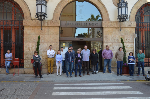 La Corporación Municipal, el funcionariado, así como la ciudadanía, han guardado un minuto de silencio frente a las puertas del Ayuntamiento de Sagunto, de la Tenencia de Alcaldía de Puerto de Sagunto y del Centro Cívico Antiguo Sanatorio en señal de condena y repulsa por un nuevo supuesto caso de asesinato machista.
