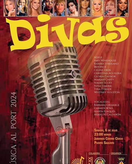 Por otro lado, el sábado 6 de julio a las 23 horas la Unión Musical Porteña ofrecerá el concierto Divas, en los jardines del Centro Cívico Antiguo Sanatorio de Puerto de Sagunto. En la gala, las vocalistas Bárbara Gramage, Carmen Bosó, Marta Folqués y Merxe N. Calderón, interpretarán canciones de artistas como Adele, Amy Winehouse, Beyoncé o Tina Turner, entre otras.