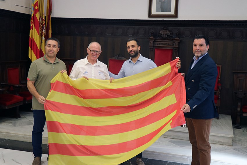 El alcalde de Sagunto, Darío Moreno; y el concejal de Actividad Física, Salud y Deportes, Javier Timón, han recibido esta mañana en el salón de plenos del Ayuntamiento de Sagunto a Pepe García para desearle suerte ante la expedición que va a emprender próximamente. Cabe mencionar que al final del acto, se le ha entregado una bandera de Sagunto para que abandere el municipio durante su desafío, que la ha recibido con agrado y con una gran ilusión.
