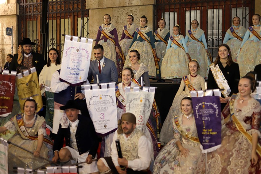 La entrega de premios de las Fallas 2024, que tuvo lugar el sábado a las puertas del Ayuntamiento de Sagunto, culminó con la victoria en la Sección Especial de la Falla Plaza Rodrigo en el monumento grande, y la de la Falla La Victoria en el monumento infantil.