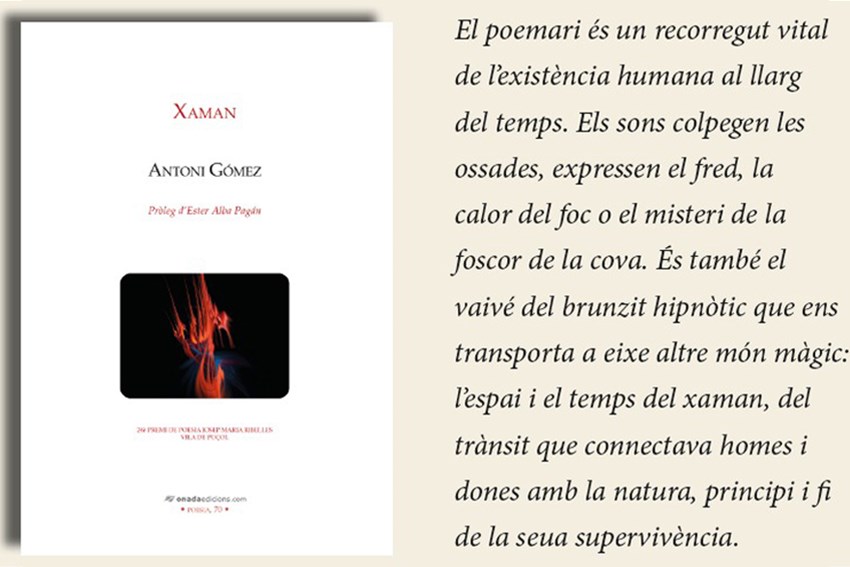 El escritor Antoni Gómez presentará el próximo miércoles, 1 de diciembre, a las 19:30 horas en el Centro Cultural Mario Monreal su nuevo poemario, Xaman, editado por Onada Edicions con la colaboración del Departamento de Cultura del Ayuntamiento de Sagunto y que obtuvo el Premio de Poesía Josep Maria Ribelles de la Vila de Puçol en su 24ª edición.