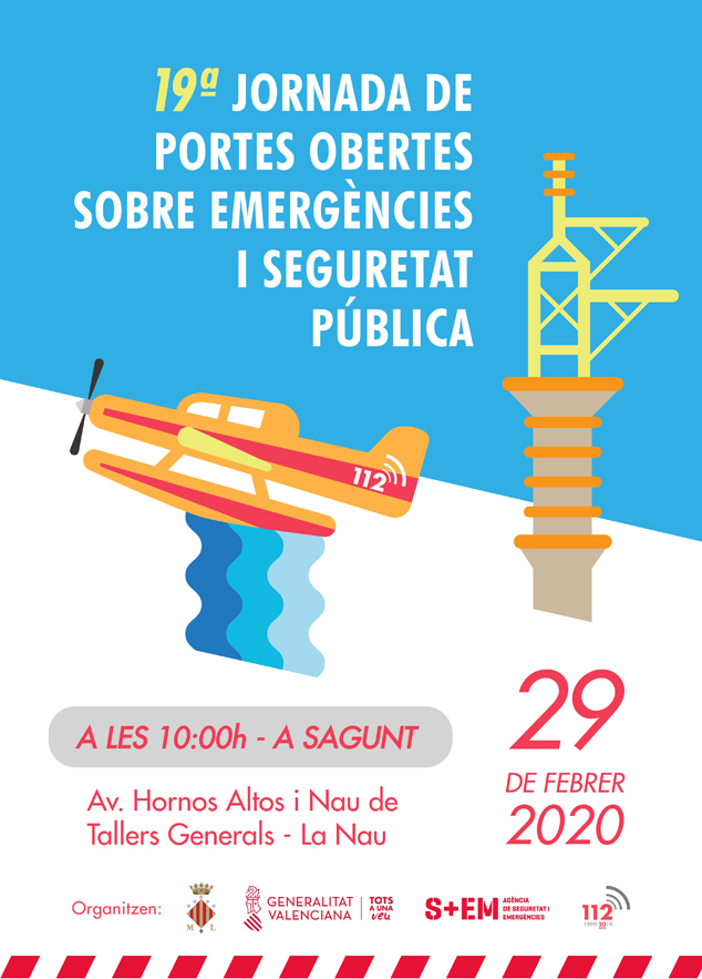 La 19ª Jornada de Puertas Abiertas sobre Emergencias y Seguridad Pública reunirá en Puerto de Sagunto el próximo 29 de febrero a más de 300 profesionales de más de una veintena de organismos relacionados con la intervención en todo tipo de emergencias. Se tratará pues de una jornada de puertas abiertas para la ciudadanía en general y para los niños en particular en el que se podrá disfrutar de una auténtica exhibición de recursos, entre los cuales destacarán helicópteros, vehículos patrulla, quads, motocicletas y embarcación policiales, parque de educación vial, circuitos de habilidad y simuladores de vuelco en accidente de tráfico, drones policiales y de rescate, globos sonda, caballos, camiones de bomberos, puesto de mando avanzado, etc. Es decir, todos los recursos con los que cuenta la Comunidad Valenciana para hacer frente a todo tipo de situaciones. La jornada se inaugurará a las 10 horas y estará abierta al público hasta las 15.00 horas, en el recinto ferial de Puerto de Sagunto junto al Horno Alto.