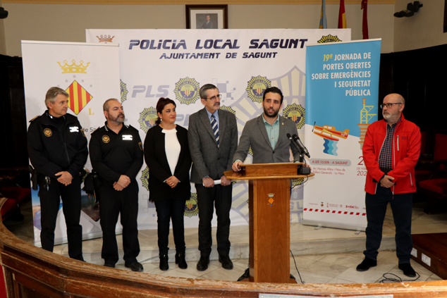 El alcalde de Sagunt, Darío Moreno; el Secretario Autonómico Seguridad y Emergencias, José María Ángel y la concejala de Policía Local de Sagunto, Natalia Antonino, han presentado esta mañana en el ayuntamiento la jornada, que se celebra cada año en una ciudad de la Comunidad Valenciana. Darío Moreno ha destacado la apuesta por la seguridad tanto del ayuntamiento como de la Generalitat Valenciana: «Se trata de tener coherencia política. Vemos cómo la Generalitat intenta avanzar en nuevos aspectos de seguridad, como el compromiso de riesgo cero en las playas pensando en reducir las muertes por ahogamientos». El alcalde ha añadido que la Generalitat está innovando con las tecnologías más punteras incorporándolas a la seguridad, y en ese sentido «también el Ayuntamiento de Sagunto ha demostrado una trayectoria de apuesta por la seguridad desde que comenzó la legislatura hemos sacado más de 30 plazas de policía para llegar a un nivel óptimo de prestación del servicio y también estamos apostando por las nuevas tecnologías como la incorporación de los drones».