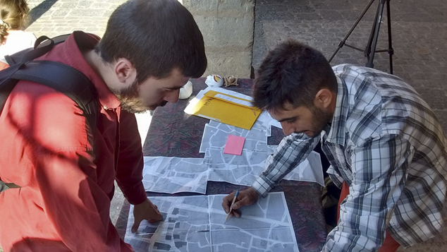 Así mismo, el domingo participaron en el mercadillo de intercambio organizado por la asociación de vecinos de Ciutat Vella, en la Plaza Mayor. Su actividad principal consistió en la realización de un mapeo para conocer la evolución comercial del barrio a lo largo del tiempo, gracias al testimonio de los vecinos, que  hicieron un ejercicio de memoria para localizar las zonas comerciales que operaban años atrás en la zona histórica de la ciudad.