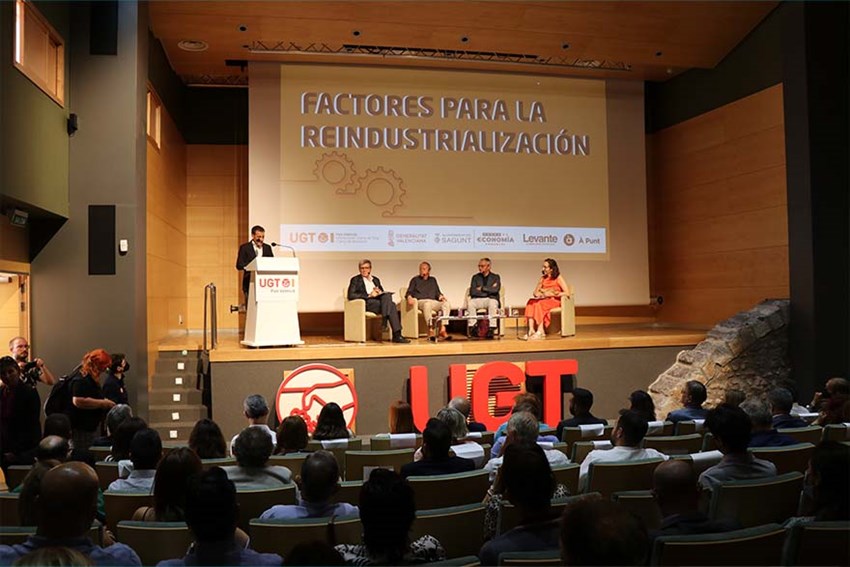 UGT-PV en l'Horta Nord-Camp de Túria i Camp de Morvedre ha organizado la jornada 'Factores para la reindustrialización' que ha tenido lugar esta mañana en el Centro Cultural Capellà Pallarés de Sagunto al tratarse de un lugar estratégico por su importancia para la economía no solo de la comarca, sino de toda la Comunitat Valenciana.