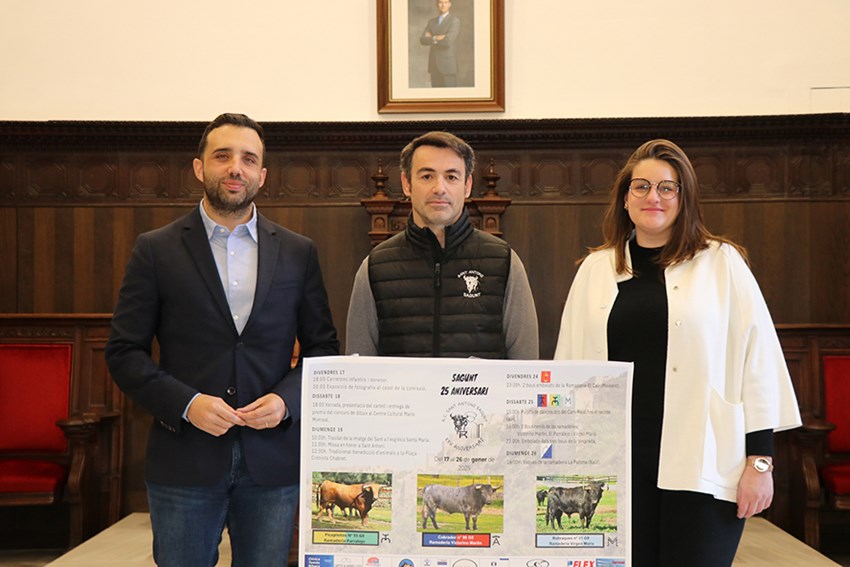 La programación se ha presentado en el salón de plenos del Ayuntamiento y han participado el alcalde de Sagunto, Darío Moreno; la concejala de Fiestas y Cultura Popular, Patricia Sánchez, y el representante de la Associació Cultural Sant Antoni Sagunt, José Miguel Monleón.