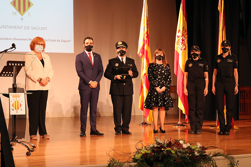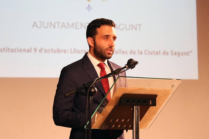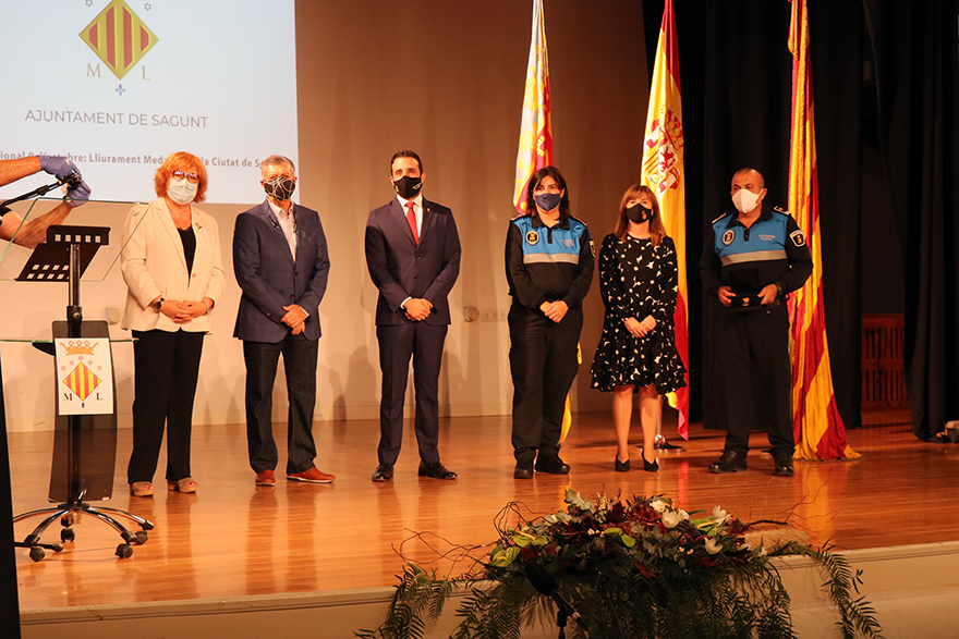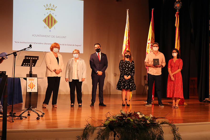 Sagunto ha celebrado un año más la festividad del 9 de Octubre, Día de la Comunidad Valenciana, pero este año con la peculiaridad derivada de la pandemia por COVID-19 que ha hecho que no se lleve a cabo la tradicional bajada de bandera desde el consistorio ni la procesión cívica. Este 2020, de los actos institucionales el Ayuntamiento de Sagunto ha llevado a cabo la entrega de Medallas de la Ciudad en el Teatro de Begoña, con todas las medidas de seguridad necesarias, que este año se han concedido a Vicente Madrid, al Club Deportivo Acero y a las instituciones públicas y privadas por los servicios prestados durante la crisis de la COVID-19.