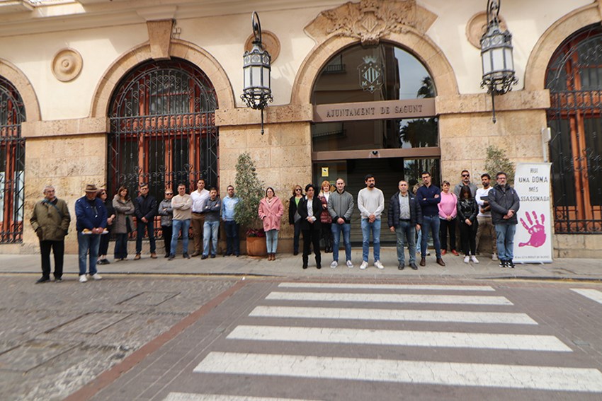 El Ayuntamiento de Sagunto, a través del Área de Igualdad, ha convocado un minuto de silencio hoy, jueves 21 de marzo, a las 12:00 horas por los presuntos asesinatos machistas el pasado 17 de marzo de dos hermanas menores de edad, una de dos años y otra de cuatro, por parte de su padre en Almería; y el de una mujer de 48 años asesinada por su expareja en Málaga. En ambos casos el presunto agresor se suicidó. También hay que añadir el asesinato de una mujer de 24 años el 19 de marzo en A Coruña.