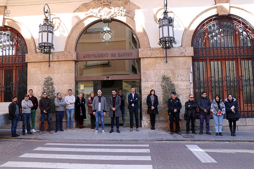 Miembros de la Corporación Municipal, del personal del Ayuntamiento y la ciudadanía se han concentrado a las 12 del mediodía a las puertas del Consistorio para guardar un minuto de silencio en señal de duelo por las víctimas y familiares del trágico incendio ocurrido en un edificio de la Vila Joiosa. De este modo, la ciudad de Sagunto se ha sumado a la decisión de la Federación Valenciana de Municipios y Provincias (FVMP) de convocar minutos de silencio ante esta tragedia.