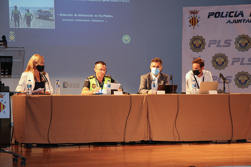 El teatro de Begoña de Puerto de Sagunto ha acogido durante esta mañana la I Jornada de Seguridad en tiempos de Covid, organizada por el Ayuntamiento de Sagunto y la Policía Local. Esta jornada ha consistido en una serie de ponencias ofrecidas por miembros de las fuerzas y cuerpos de seguridad locales, de entidades como la Agencia de Seguridad y Emergencias y 112, Bandera Azul y de empresas que han participado en la seguridad de las playas del municipio como son General Drones o Mars Intelligence.
