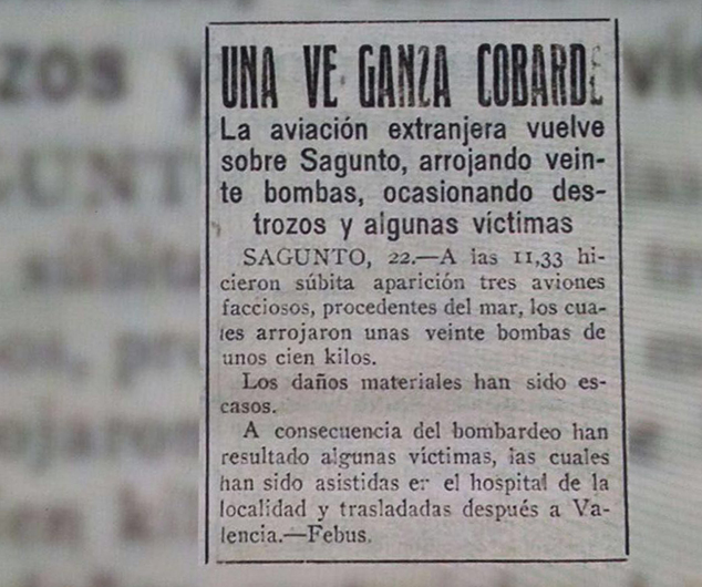 Valencia y todo el litoral levantino fue objeto de una agresión continuada sin declaración de guerra que ya no acabó hasta el final del conflicto, y después se reprodujo con el bombardeo de ciudades y poblaciones en la IIª Guerra Mundial. Centenares de poblaciones valencianas sufrieron aquellos ataques cuyas víctimas parecen haber sido olvidadas; no fueron soldados caídos en combate ni fusilados en represiones posteriores, sino víctimas por estar en territorio leal al Régimen legítimo.