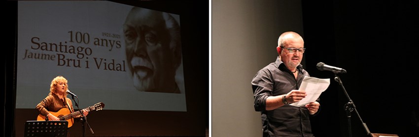 Además, su nieta, Dulce, y bisnietos, Gorka y Pau, también participaron en el acto con un recital de poesía de la obra de Bru i Vidal, quienes recitaron Aquell día, La cancó de berenar y Toc-toc, respectivamente.
