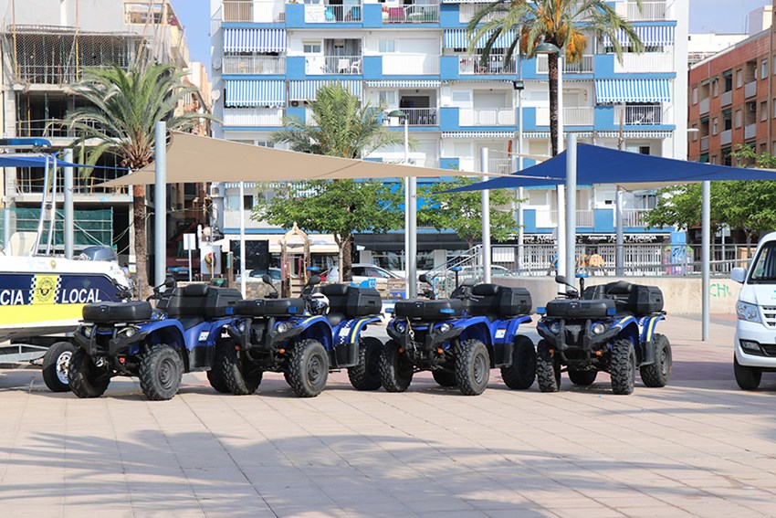 Por lo que respecta a los medios materiales, la sección dispone de cuatro quads policiales, dos vehículos todo terreno y una embarcación. El servicio de Policía de Playas empieza a las 10 horas y acaba a las 20 horas.