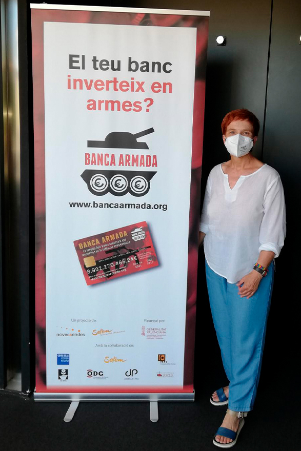 El encuentro, que se celebró en el espacio La Rambleta y al que Soriano acudió como invitada, fue un acto de reflexión conjunta sobre los retos de futuro para esta campaña que busca concienciar acerca de la inversión armamentística de los bancos y contó con las intervenciones del periodista de El Salto diario Yago Álvarez El Economista Cabreado; el coordinador del centro Delàs, Jordi Calvo, y la consellera de Participación, Transparencia, Cooperación y Calidad Democrática, Rosa Pérez Garijo.