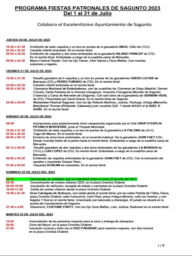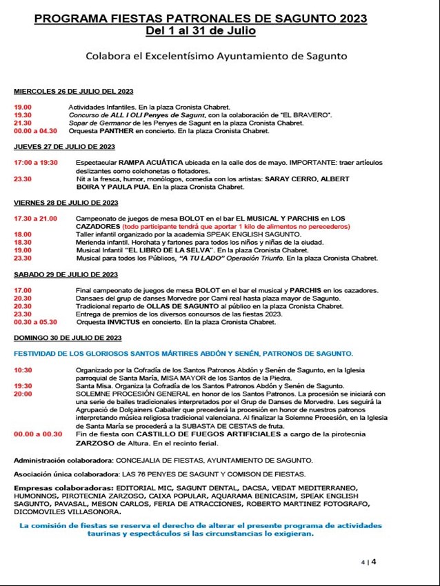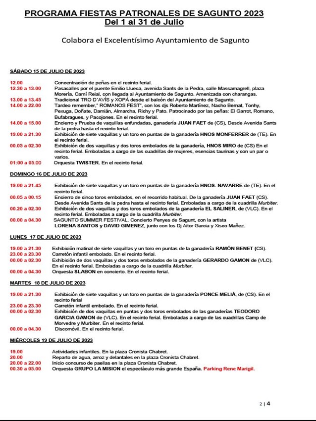 Puede descargarse el programa completo con los horarios y todos los detalles relativos a cada acto en la página web del Ayuntamiento de Sagunto.