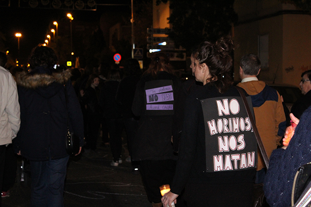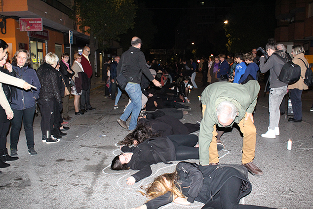 La manifestación salió el sábado a las 18.30 horas de la tarde de la Tenencia de Alcaldía de Puerto de Sagunto. En su recorrido por la avenida Camp de Morvedre, se detuvo en dos ocasiones, una frente a Correos y otra en la rotonda del I.E.S. Eduardo Merello. En estos dos momentos, una fila de mujeres vestidas de negro y con un cirio en la mano gritaron y se tiraron al suelo como si las estuvieran asesinando. Acto seguido, se dibujó su silueta con una tiza en el suelo mientras la gente miraba los cuerpos simbólicamente sin vida.