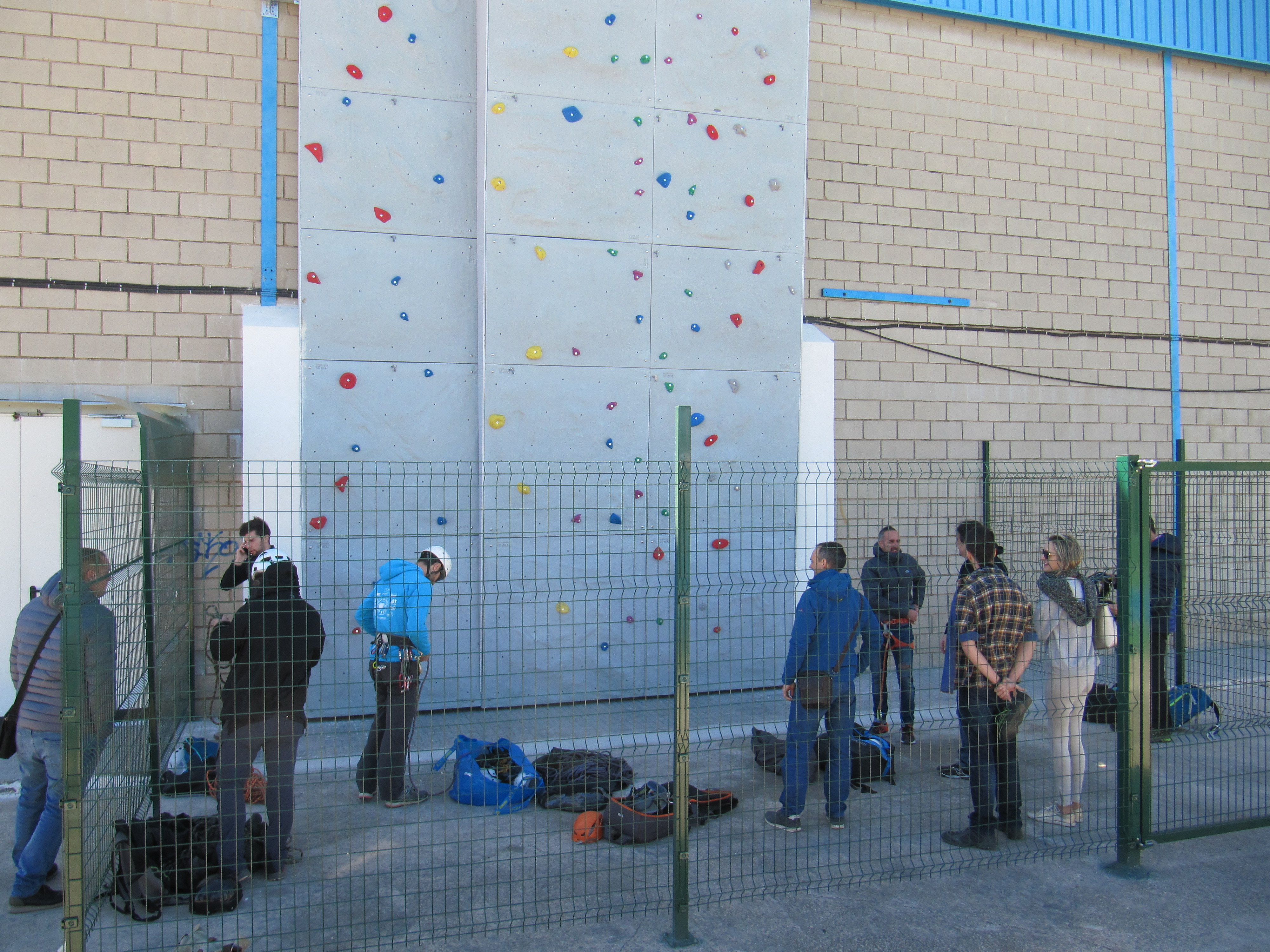 Más tarde, el acto se trasladó al Rocódromo, que está en el exterior del pabellón gimnasio del polideportivo municipal. Aquí, los miembros más experimentados del club prepararon la pared con gatos y cuerdas para que los asistentes pudieran escalar con supervisión y seguridad.
