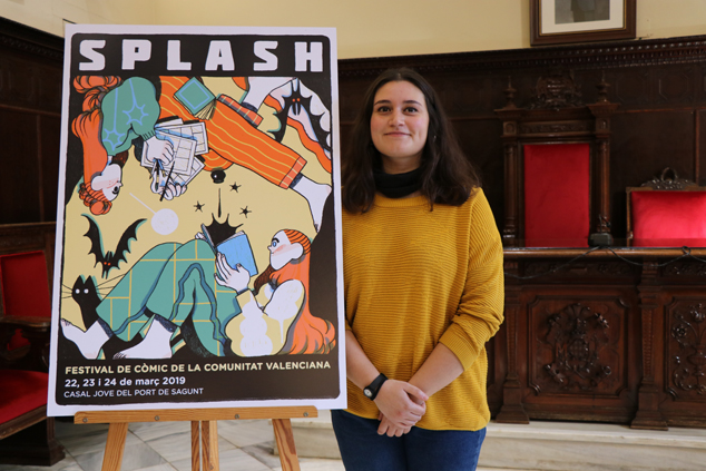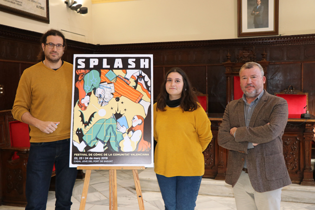 Este viernes, 25 de enero, se ha presentado en el salón de plenos del Ayuntamiento de Sagunto, el cartel de la sexta edición del ‘Splash Sagunt Festival del Còmic’ de la Comunidad Valenciana. El evento ha contado con la presencia del alcalde de Sagunto, Quico Fernández, el concejal de Juventud, Guillermo Sampedro, el concejal de Patrimonio Cultural, Pablo Abelleira, y la autora del cartel, Núria Tamarit. El festival se celebrará el 22, 23 y 24 de marzo de 2019 en el Casal Jove del Port de Sagunt.