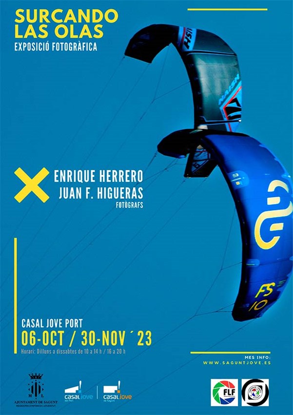 La exposición fotográfica Surcando las olas, de Enrique Herrero y Juan Francisco Higueras, se instalará en el Casal Jove Port (calle Vent de Marinada, s/n) del 6 de octubre al 30 de noviembre, en la que los autores trasladan su visión de un deporte acuático tan colorido como es el surf, windsurf y el kitesurf mediante las fotografías.