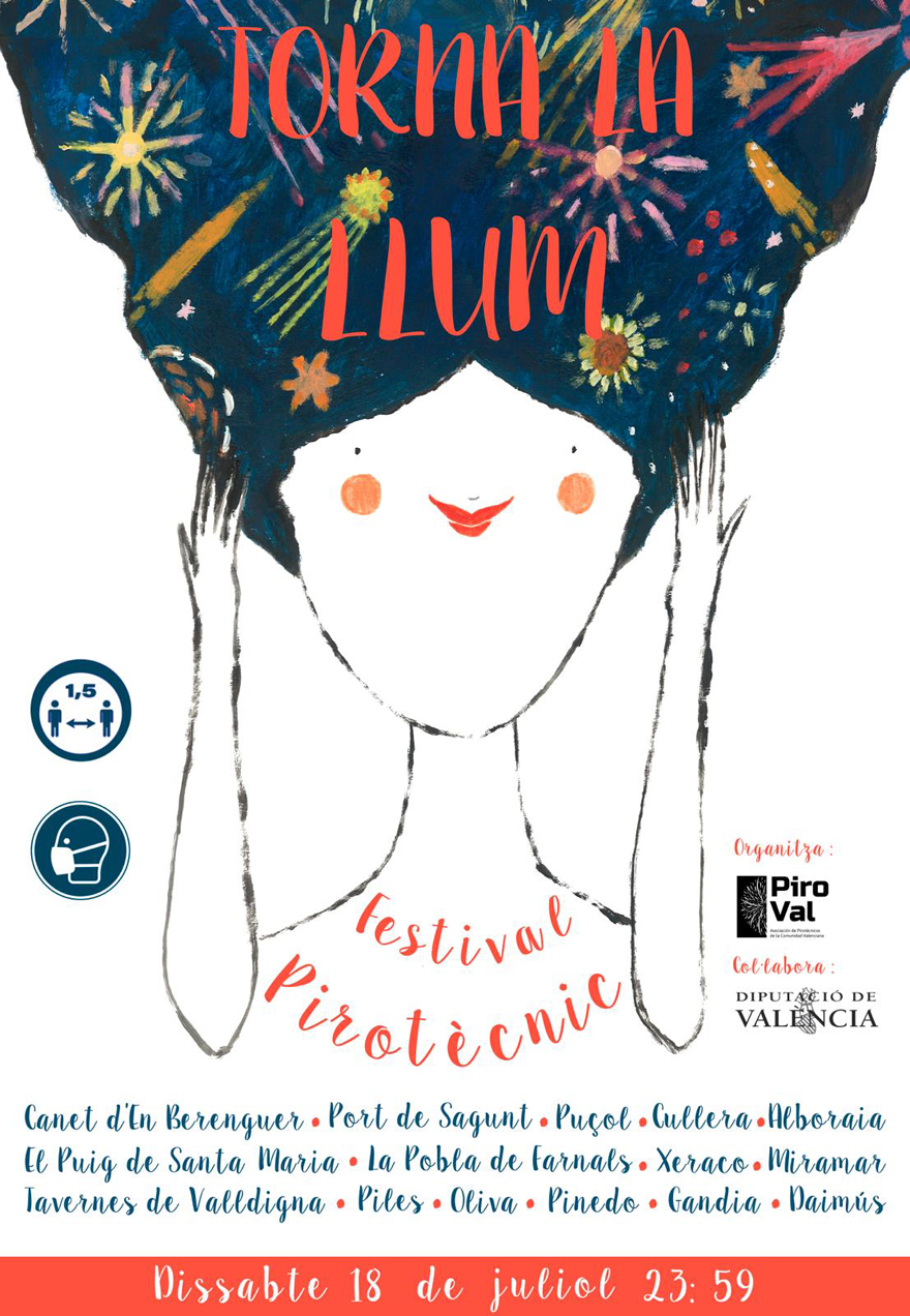 El próximo sábado, 18 de julio, a las 23.59 horas tendrá lugar un macroespectáculo pirotécnico que se realizará de manera simultánea en diferentes municipios de la provincia de Valencia, entre los que se encuentra Sagunto. Bajo el lema ‘Torna la llum’, un total de 15 castillos de fuegos artificiales se dispararán a la vez en 15 municipios valencianos. En el caso de Sagunto, el castillo será en la avenida Altos Hornos de Puerto de Sagunto, junto al recinto ferial.