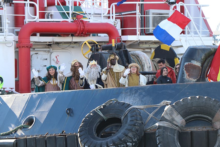 Melchor, Gaspar y Baltasar han desembarcado en el puerto marítimo y han sido recibidos por los niños y las niñas del municipio