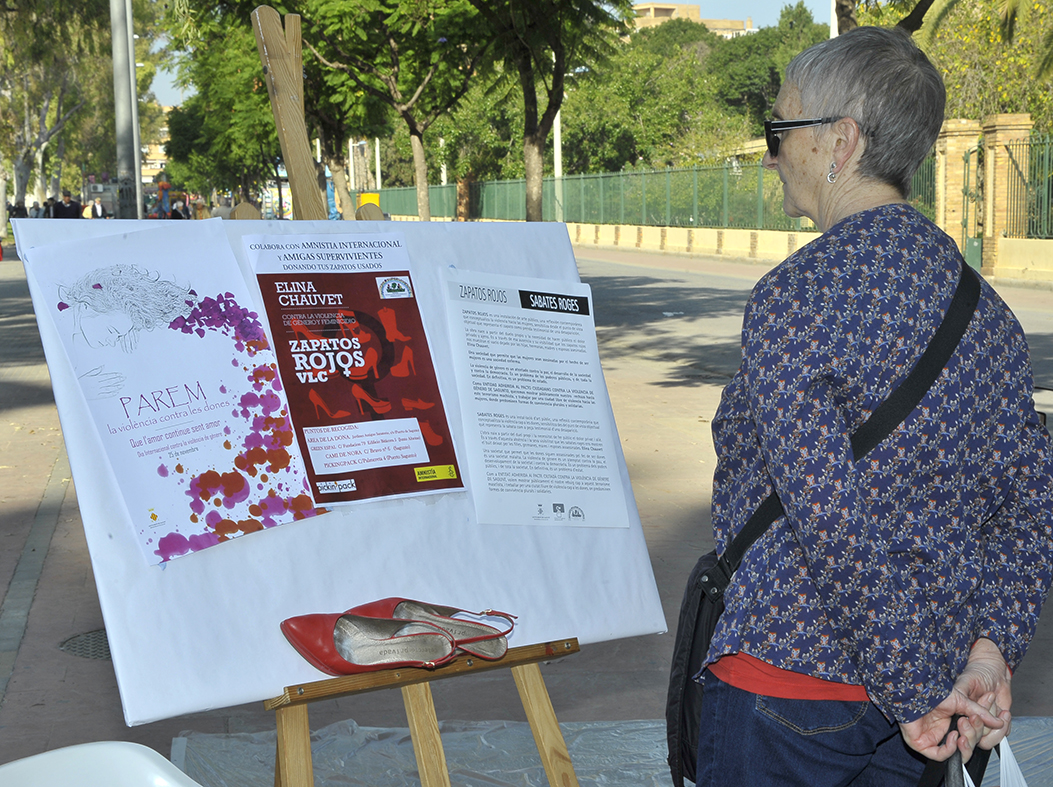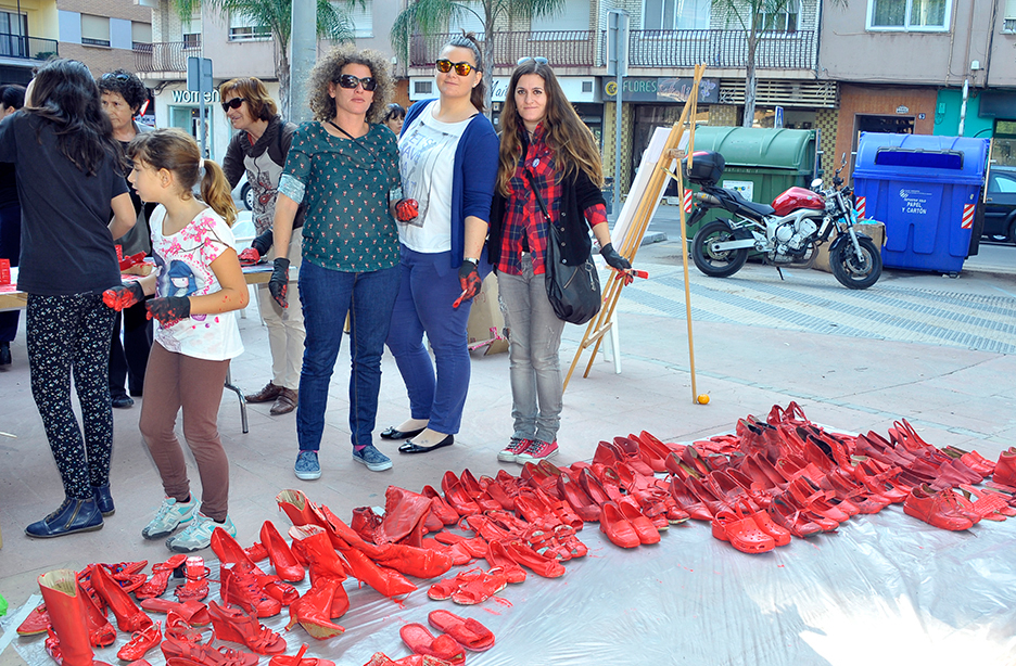 La concejalía de Igualdad del Ayuntamiento de Sagunto ya ha puesto en marcha el programa de actos para conmemorar el 25 de Noviembre, Día Internacional contra la Violencia de Género. Durante la mañana del pasado sábado 14 de noviembre, se realizó el taller Zapatos Rojos en los Jardines del Centro Cívico de Puerto de Sagunto. En esta actividad, los participantes pudieron pintar de color rojo una gran cantidad de pares de zapatos usados como símbolo en contra de la violencia de género, puesto que cada uno de ellos simboliza la desaparición de una mujer.