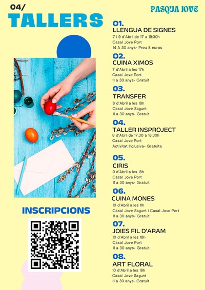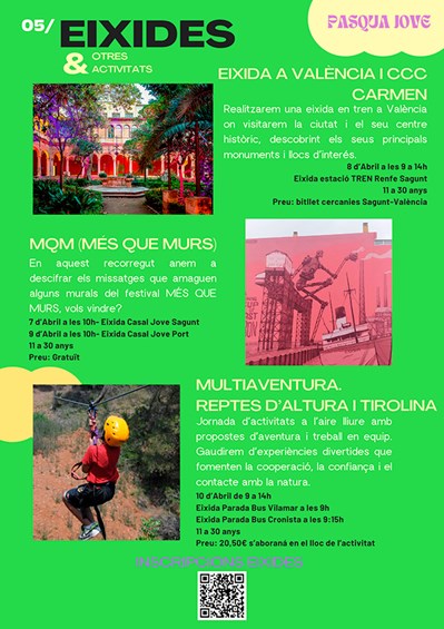 El departamento de Juventud del Ayuntamiento de Sagunto organiza una nueva edición de Pasqua Jove, una completa programación de actividades dirigida a jóvenes de entre 11 y 30 años que se desarrollará del 7 al 10 de abril en los Casals Joves de Sagunto y Puerto de Sagunto, así como en diferentes espacios del municipio y sus alrededores.