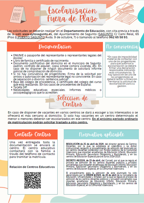 Información escolarización fuera de plazo y relación documentación para curso 2025/2026