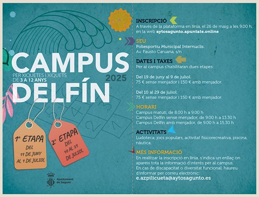 Per a la vint-i-tresena edició del Campus Delfín de la Regidoria d'Activitat Física, Salut i Esports s'oferiran 400 places, igual que en l'edició del 2024. Les inscripcions en línia començaran el 26 de maig a les 9 hores i finalitzaran el 8 de juny.