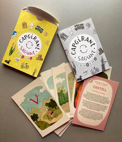 El joc proposa un viatge lúdic per les característiques mediambientals, històriques, econòmiques i culturals que fan singular el municipi. Les cartes de vocabulari estan dividides en cinc parts diferenciades per colors: Història (marró), Identitat (taronja), Medi Ambient (verd), Ciutat (blau) i Personatge (roig). Es poden utilitzar com a guia o emprant les activitats, també interactives, que l'acompanyen al web https://bit.ly/capgirantsagunt.