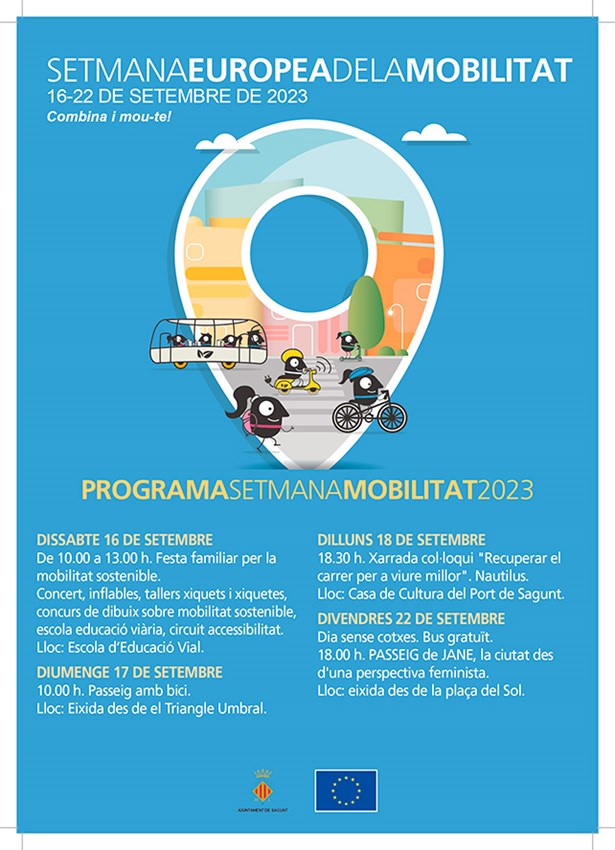La Regidoria de Mobilitat Urbana de l'Ajuntament de Sagunt promourà diverses accions obertes a la ciutadania amb motiu de la Setmana Europea de la Mobilitat. En la programació d'esta iniciativa que tindrà lloc des del 16 al 22 de setembre també col·laboren altres departaments del Consistori. A més, han organitzat altres activitats que no estaran obertes a tots els públics, sinó que estaran destinades als alumnes i les alumnes de diversos instituts de la ciutat.