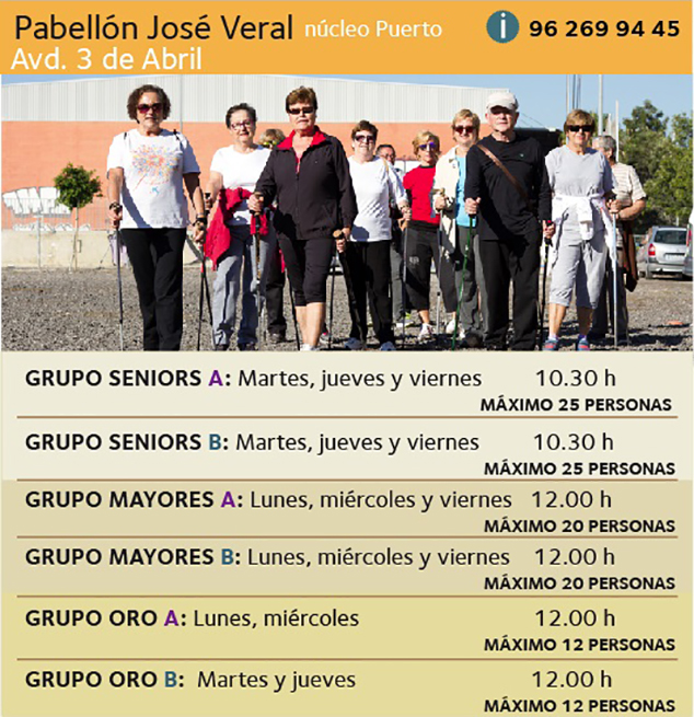 Amb una duració anual, el programa Activa’t té com a objectiu l'activitat física continuada en persones majors que tenen de 60 a 102 anys. Les activitats s'oferixen en tres grups: Sènior (de 60 a 70 anys), Major (més de 70 anys) i Or (persones que precisen activitat individualitzada), i es realitzen tant en el Pavelló José Veral (Sènior, Major i Or) com en la Casa de la Joventut (només Sènior i Or). Les classes són de dilluns a divendres pel matí, encara que amb dies específics per a cada activitat i grup i aforament limitat.