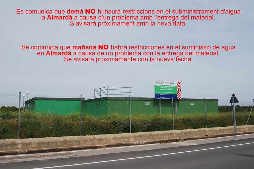 Els problemes estan en les conduccions de l’EPSAR que són les que abastixen Aigües de Sagunt en la rodalia del depòsit que té l’EPSAR en el Corral del Batle. Així, es torna a tallar l'aigua en la conducció d’Almardà, ja que ha sorgit un altre problema en la connexió a l'entrada del depòsit, una situació similar a la passada vegada, ja que un maneguet s'ha afluixat pel fred. En este cas la fuga és més xicoteta, però igualment és necessari reparar-la.