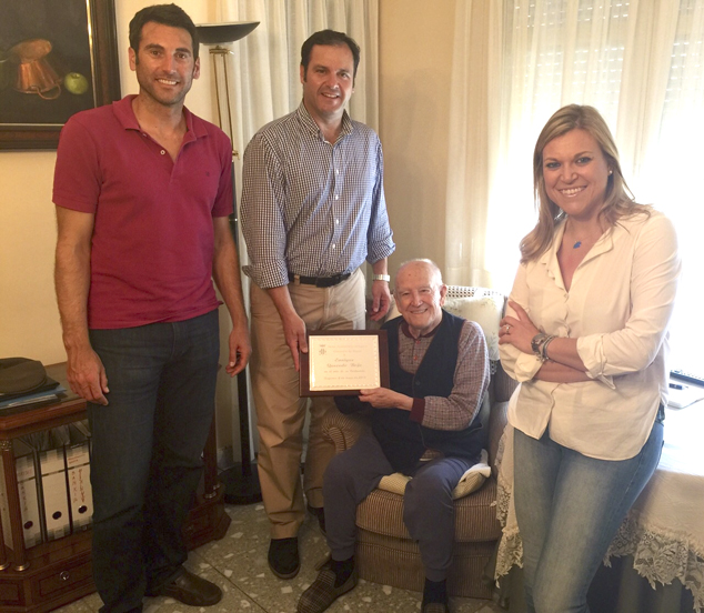 L'alcalde Sergio Muniesa, la regidora Davinia Bono i els regidors Paco Villar i Concha Peláez els han fet lliurament de les plaques i els han felicitat