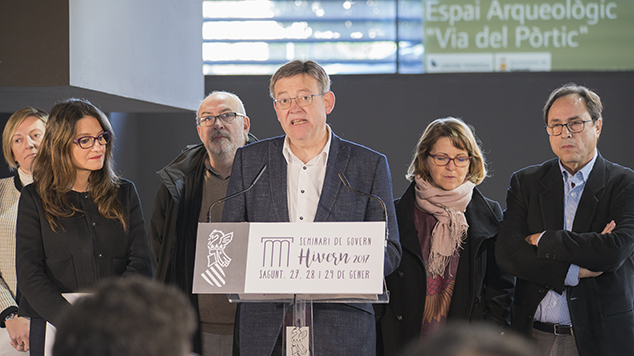 El diumenge, el Consell, encapçalat per Puig i Oltra, va exposar les conclusions d'aquest seminari en roda de premsa en la Via del Pòrtic, envoltats de ruïnes romanes que reflecteixen el gran patrimoni històric de Sagunt.