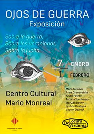 Ojos de Guerra és el títol d'una exposició sobre el conflicte d'Ucraïna que s'inaugura hui a les 19 hores en el Centre Cultural Mario Monreal. La comunitat d'artistes contemporanis Locura De Verduras és la promotora d'esta mostra composta per 27 llenços, 30 fotografies i 2 obres tèxtils que pertanyen a artistes d'origen ucraïnés.