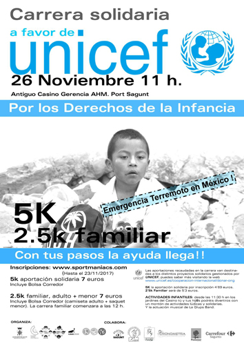 Diumenge que ve 26 de novembre tindrà lloc a les 11 hores al Port de Sagunt la II Carrera Solidària a favor d'Unicef “Pels drets de la Infància”. La carrera eixirà des del Casino de la Gerència i tindrà una versió familiar de 2’5 km i una altra de 5 km.