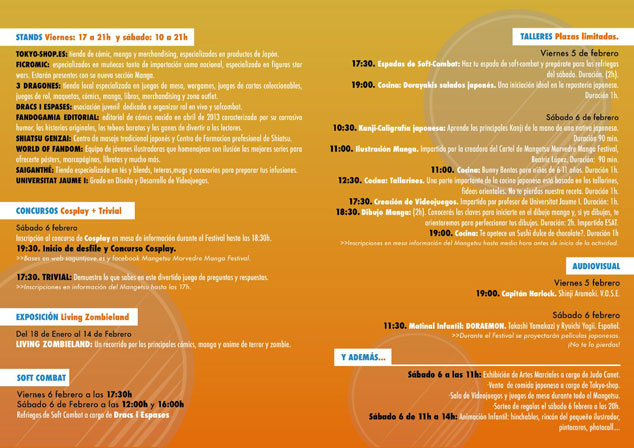 Cal destacar que, després de l'èxit de l'any passat, s'ha ampliat l'oferta de concursos, incloent una espècie de trivial amb el qual poder demostrar els coneixements d'anime i manga que tindrà lloc el dissabte a la vesprada. A més, a petició de diversos assistents a la I edició, es dedicarà el matí del dissabte a realitzar activitats infantils com: projeccions, inflables, pinta cares, el racó del xicotet il·lustrador i un photocall amb moltes sorpreses.