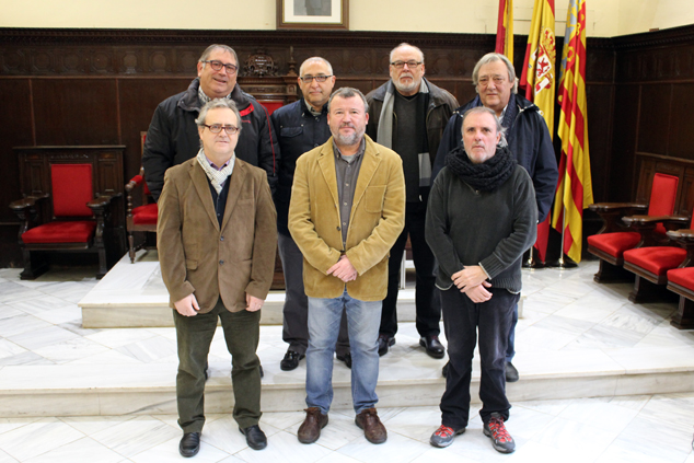 L'Alcalde de Sagunt, Quico Fernández; al regidor de Cultura, Josep Manuel Tarazona; l'autor de l'obra, Albert Forment; el president de Passió per Sagunt, José Antonio Pablos, i altres membres de l'associació han presentat hui el projecte en el consistori.