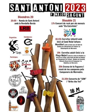 Des de l’Associació Diabòlica de Morvedre han explicat en què consistiran els actes i han destacat que  «estan molt contents i contentes de de tornar a la normalitat i que han fet una programació tenint molt en compte als menuts». Així doncs, el dissabte, 21 de gener, a les 17 hores, hi haurà un concert de rock per als més menuts de la mà del grup Els Estrellats. Posteriorment, a les 18.15 hores tindrà lloc un correfoc infantil que discorrerà des de Camí Reial i que comptarà amb la Colla Jove del Ball de Diables de l'Hospitalet de l'Infant i la Diaboliqueta de Morvedre. A les 19 hores començarà el correfoc adult des de la plaça Major amb les colles de Diables El Peirot de Tremp, la Colla Vella del Ball de Diables de l'Hospitalet de l'Infant, Diables de Castelló, Dimonis Socarrats de Campanar i la Diabòlica de Morvedre. A les 20 hores serà l'esperada encesa de la foguera i el toc de campanes voltejades pels Campaners de Morvedre. Finalment, a les 21.30 hores la clausura arribarà amb el concert de 18M i Briks the Yet. Totes estes activitats estan organitzades per l'Associació Diabòlica de Morvedre i l’Associació Amics del Cavall en col·laboració amb el departament de Festes de l'Ajuntament de Sagunt i altres associacions.