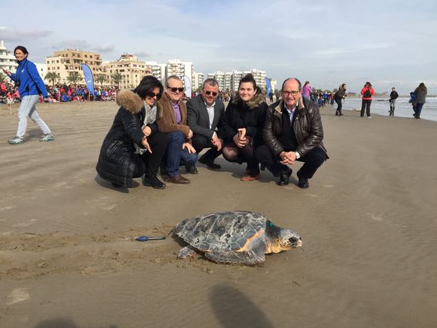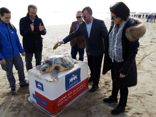 Hem tingut a 600 o 700 xiquets i xiquetes de les escoles per a soltar dues tortugues que s'han recuperat en el Oceanogràfic i que van ser capturades en les xarxes pels pescadors i que no podien viure si no eren tractades. Aquestes tortugues les hem batejat, a una li hem posat Saguntina, per la ciutat, i a l'altra li hem posat Federica, pel nostre amic fotògraf que ha desaparegut recentment i que ha treballat en l'exposició ‘Fets d’Aigüa’ que avui hem clausurat”.