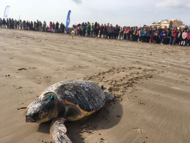 Més de 600 escolars del municipi de Sagunt, han acompanyat avui en la seua volta al mar a dues tortugues marines recuperades en l'ARCA del Mar del Oceanogràfic de València. Les tortugues porten un emissor incorporat per a poder seguir la seua trajectòria una vegada estan en el mar, la qual cosa aportarà dades de gran interés als científics del Oceanogràfic que treballen en la conservació d'aquesta espècie.