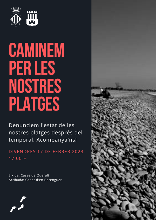 Els ajuntaments de Sagunt i de Canet d'en Berenguer han organitzat una caminada, prevista per a divendres que ve, 17 de febrer, a les 17 hores, per a denunciar l'estat de deterioració de les platges. L'eixida de la caminada serà des de les Cases de Queralt i finalitzarà a la platja de Canet d'en Berenguer.