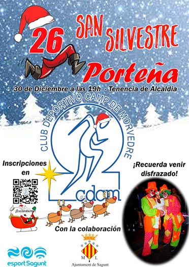 La X Sant Silvestre Ciutat de Sagunt se celebrarà el divendres 27 de desembre a les 19.30 hores i la XXVI San Silvestre Porteña el dilluns 30 a les 19 hores